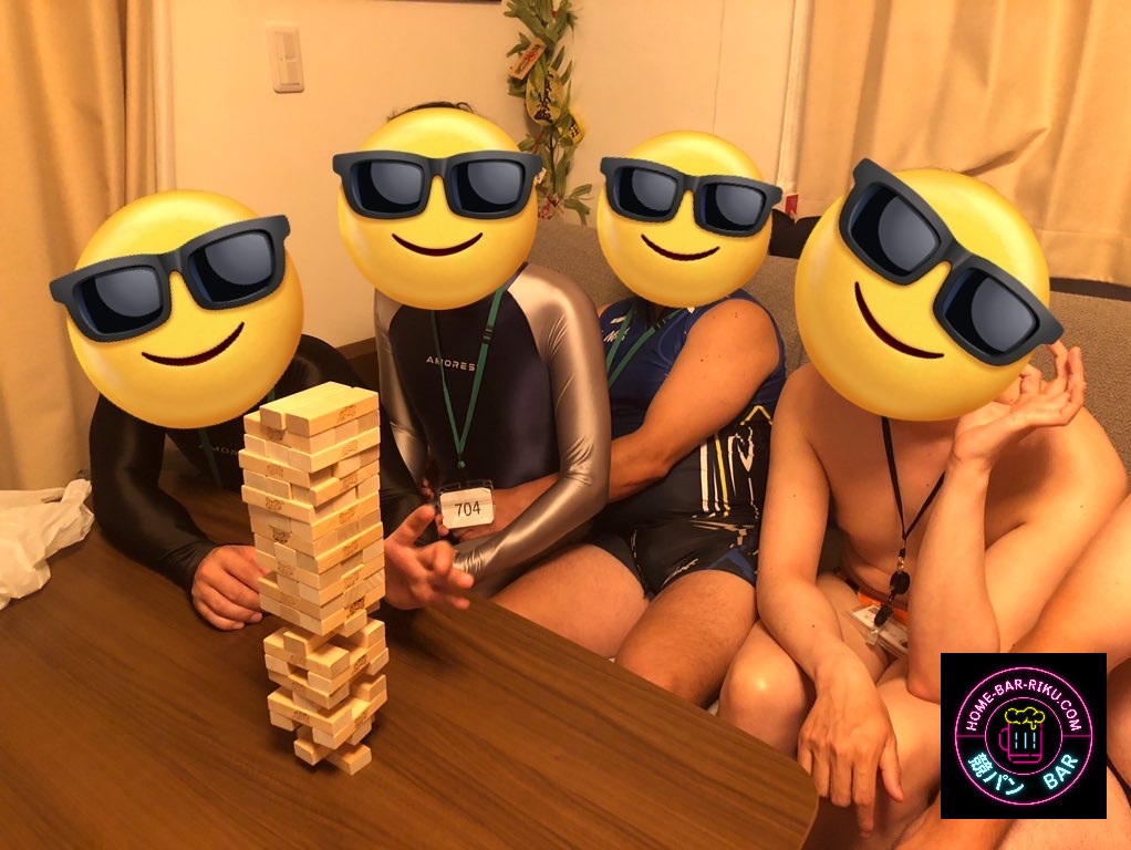 まず、お店やイベント事と勘違いするのも無理は、無いと思いますが、このサイトを含めて全て個人的な物事です。つまり、【競パンバー】は、営利目的でお店を営業していたり、イベントを開催したり、するものではありません。一般的な表現としては、個人宅でのオフ会・宅飲み会・ホームパーティーです。ドレスコードは、競パンの他にもブリーフ・褌・ゼンタイ・サカユニなどの時もあります。食べて、飲んで、遊んで、ワイワイ、スリスリしています。